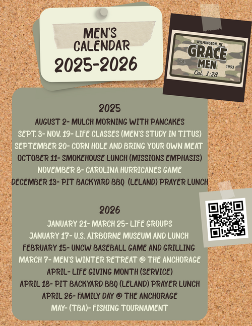 We have a passion for men being together, encouraging and challenging each other to take the next step forward in their relationship with Jesus Christ. We desire to accomplish this through meeting at intentional times to laugh, pray, and study the Word of God. Grace men support the work of the church and will lead our families in the truth of God’s Word. Teaching and disciplining must remain the goal of Grace Men. “To present every man complete in Him,” (Col. 1:28) must be the unhindered purpose as daily pressure, schedules, and temptations will try to derail, distract, and delude our men to be less of all what God created them to be.